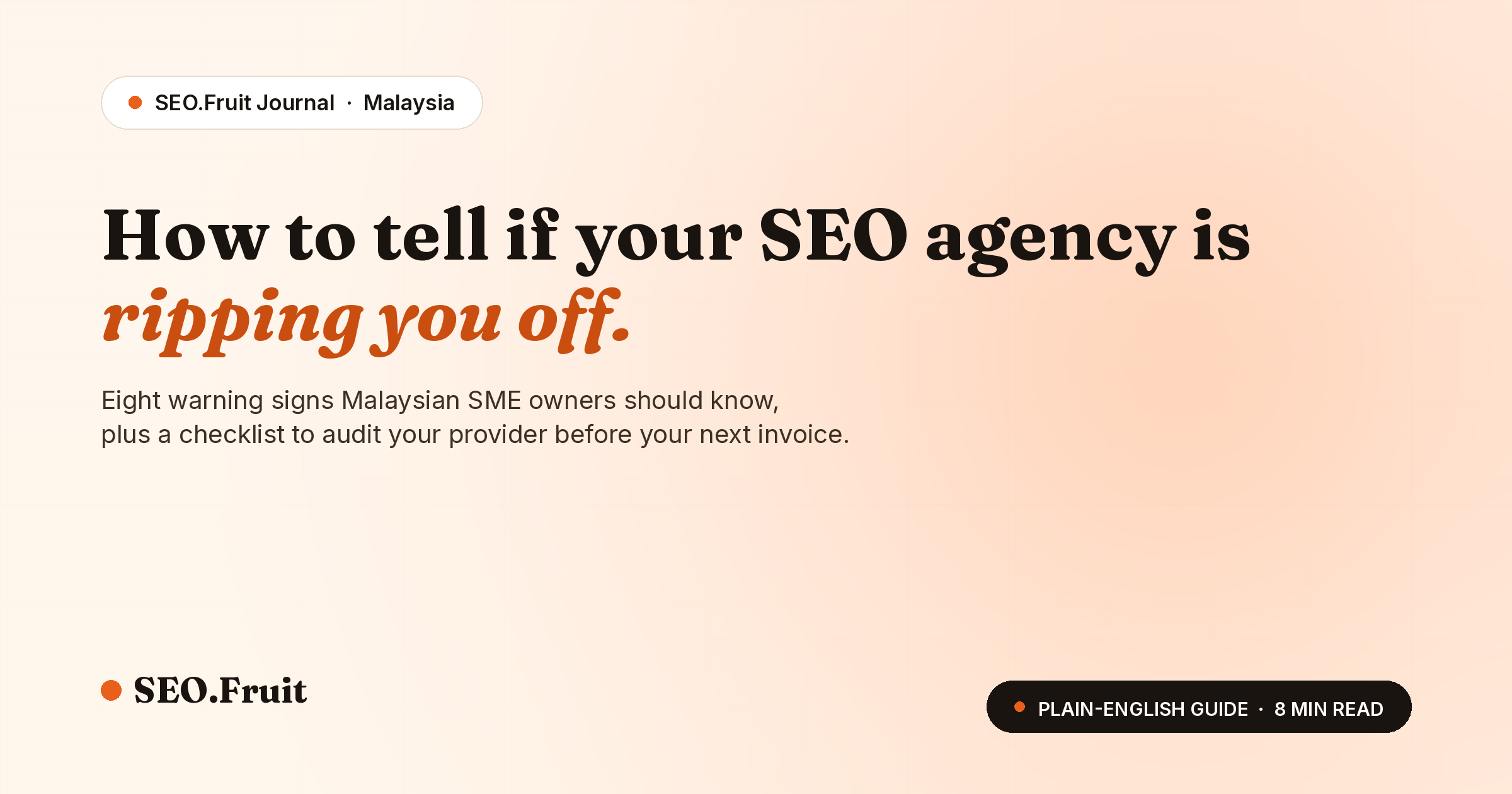 A plain-English guide for Malaysian SME owners. Eight warning signs your SEO agency is burning your budget, plus a 10-minute audit checklist.